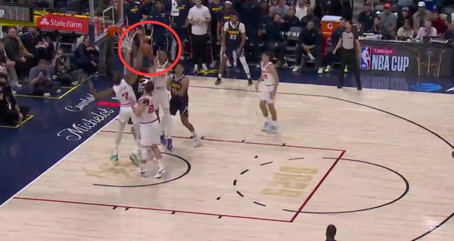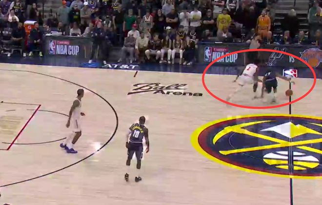 第二次是漏判,发生在距离比赛结束还有1分8秒,申京拼抢篮板时,突然摔倒在地,裁判没有任何回应。裁判报告指出,这一个回合是小哈达威伸手推在申京的身上,这次身体接触干扰了申京的篮板拼抢。这是一次漏吹的抢篮板犯规,同样是掘金获利,火箭吃亏。