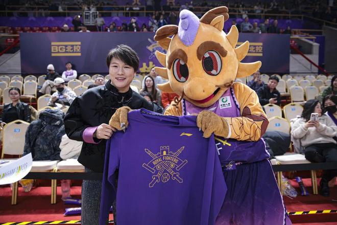 北控男篮吉祥物紫禁龙代表俱乐部将一件新赛季北控俱乐部专属FANPACK产品赠予张伟丽。