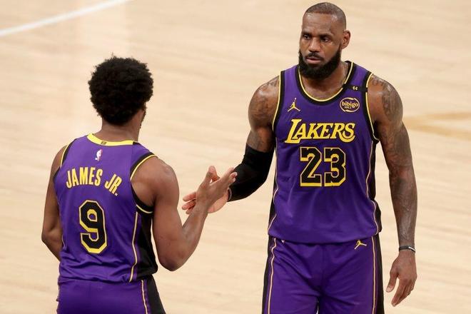 詹皇父爱如山!自己两双不如儿子更强,布朗尼轰三分老詹带头庆祝