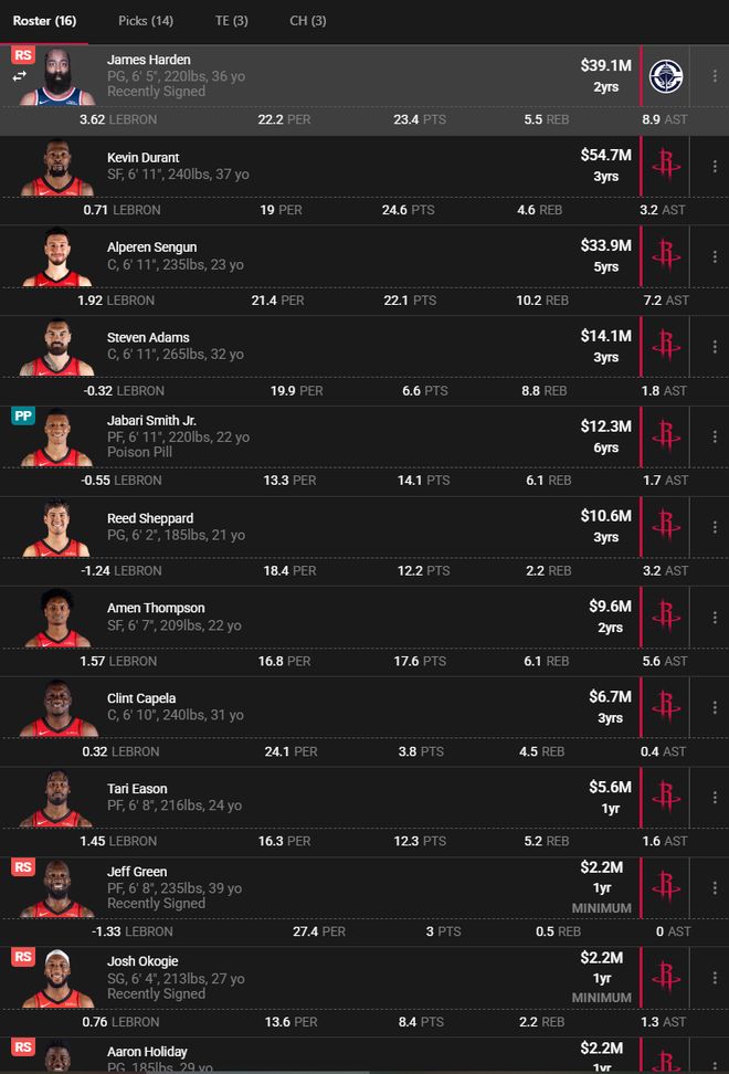 杜兰特、哈登、欧文三人曾在篮网队一同打球,但杜兰特、欧文连番遭遇伤病,哈登一人扛着球队走了很久,最终哈登被累到腹沟股拉伤,36岁的哈登依旧是一位场均27+8+6的全明星后卫,他是火箭目前最需要的一号位。