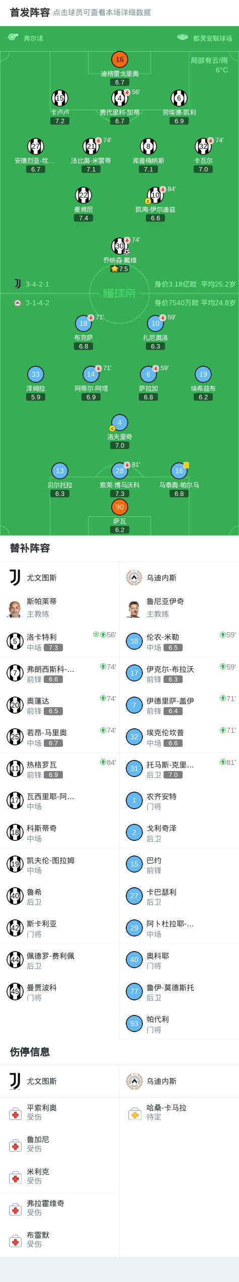 第56分钟,尤文换人调整,洛卡特利上场替换费代里科-加蒂